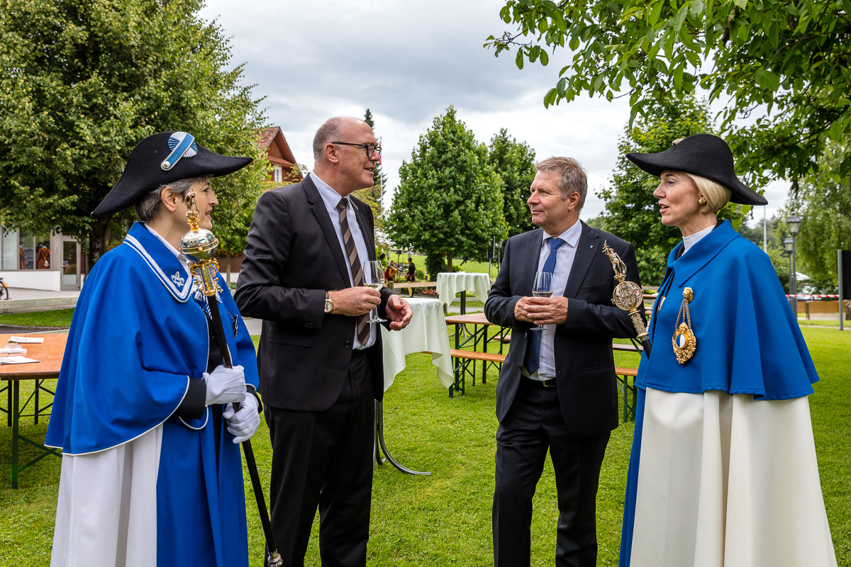 Der Zuger Landammann Martin Pfister und der Luzerner Regierungspräsident Marcel Schwerzmann mit Standesweibelinnen